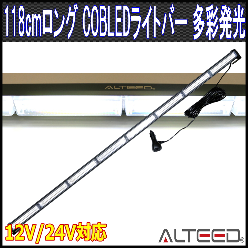 | □車載用のLEDライトバーです。 □COB LED搭載により、従来の球型LEDとは違い鮮やかに面発光します。 □約118cmのロングサイズ、錆腐食に強いアルミニウム合金ボディ仕様。 □各種フラッシュ、流動、交互、不規則ランダム、常時全点灯等、28パターンの多彩な発光アクションをご使用シーンに合わせてご活用いただけます。 □基本的なパターン以外にも、1ユニット飛ばしで流動、流動しながら片側にたまっていく、中心から外側に・外側から中心に流動、等々珍しいアクション満載です。詳しくは動画をご参照ください。 □メモリー機能付きなので、電源をオフにした時のパターンから再起動します。 □シガーソケットにはON/OFF電源スイッチと点灯パターン切替えスイッチの2系統スイッチを搭載。電源ランプ付なので操作も簡単です。 □レギュレータ内蔵により10-30V対応なので、12V乗用車から24V大型トラックまで幅広い車種に適合します。 □電磁ノイズ対策製品です。 |