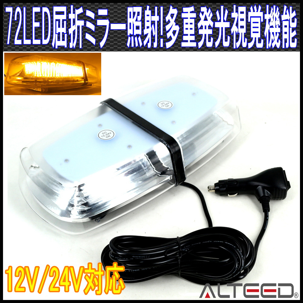 | LEDライトタイプ回転灯です。 側面には拡散ミラーを採用し、上側に内蔵されている72個のLED発光が反射します。 拡散ミラーは角度を付けた段構造になっているので、側面全体が発光しているような視覚効果があります。 全面が発光しているように見えますが、上部72灯のみが発光元となる為に省エネ・軽量仕様となっています。 LEDはSMD5730を採用。発光効率UP高照度化を実現しています。 シガーソケット部のスイッチにより、点灯点滅パターンをチェンジ出来ます(交互点滅、回転、フラッシュ点滅等から消灯まで変化します。詳しくは動画をご参照下さい)。 内蔵反射板電動回転モデルとは違いLED発光回転なので、モーター作動音が無く車内への騒音の心配ご不要です。 シガーソケットからの簡単接続で、緊急時、作業時等の警告灯として最適です。 取り付け面には強力マグネット付属です。 |