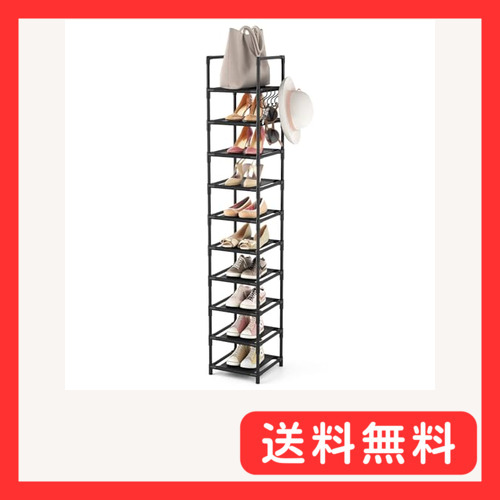 BrFoYu シューズラック 10段 靴収納 靴箱 スリム フック付き 分割可 シューズラック 省スペース 組み立て式 大容量 不織布 狭い 玄