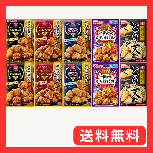 日清 唐揚げ粉+とり天 5種 (から揚げ粉香ばししょうゆ味2袋、から揚げ粉ガーリック風味2袋、から揚げ粉塩味2袋、中華街のから揚げ粉2袋、とり天
