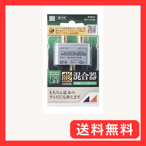 日本アンテナ 屋内用混合分波器 シールド型 4K8K対応 出力端子-BS・CS入力端子間電流通過型 MXEUV