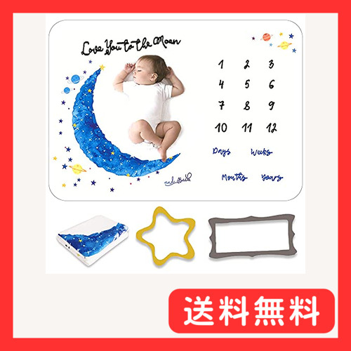 ・?商品特徴近年ママさんの間で大人気の月齢フォト&寝相アートの登場この商品は月をモチーフにしたデザインで、月の上に赤ちゃんを寝かしつけてあげることで 可愛い写真が簡単に撮れちゃいます。新生児から1歳になるまでの12ヶ月、月齢の数字に付属の星で囲うことで毎月の成長の記録を残していくことができますさらに、「装飾品が付属しているので寝相アート撮影するのはハードルが高い」という初心者ママさんには打ってつけの寝相アートですよ。