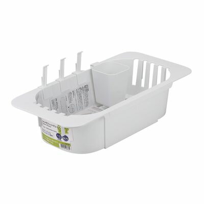 【商品情報】●シンク内に吊り下げるタイプの水切りカゴですが、長さが伸び縮みし、シンクの大きさにフィットします。(異形のシンクには合わない可能性があります。)●しっかりお皿も立てられる構造に合わせて、底から小物が落ちにくい構造。●カトラリーラックとボトルスタンド3個が付属で付いています。●溶けださない安全な銀イオン系抗菌剤が練り込まれています。 ■商品サイズ(約):幅220×奥行440×高さ105mm製品重量(約):766g■材質:本体:ABS樹脂カトラリーラック、ボトルスタンド:ポリプロピレン【備考】■生産地/日本【関連ワード】