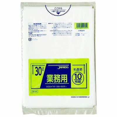 メタロセン配合ポリ袋 30L半透明10枚 ジャパックス