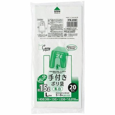 手付ポリ袋Lサイズ(約15L、45号)20枚入 乳白 ジャパックス