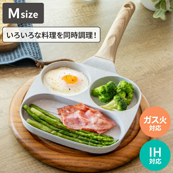 いろんな料理を同時調理! 仕切り付 マルチ フライパン Mサイズ ガス火&IH 対応 マルチパン ふっ素加工 トリプルパン 3in1 コーティング 玉子焼き た