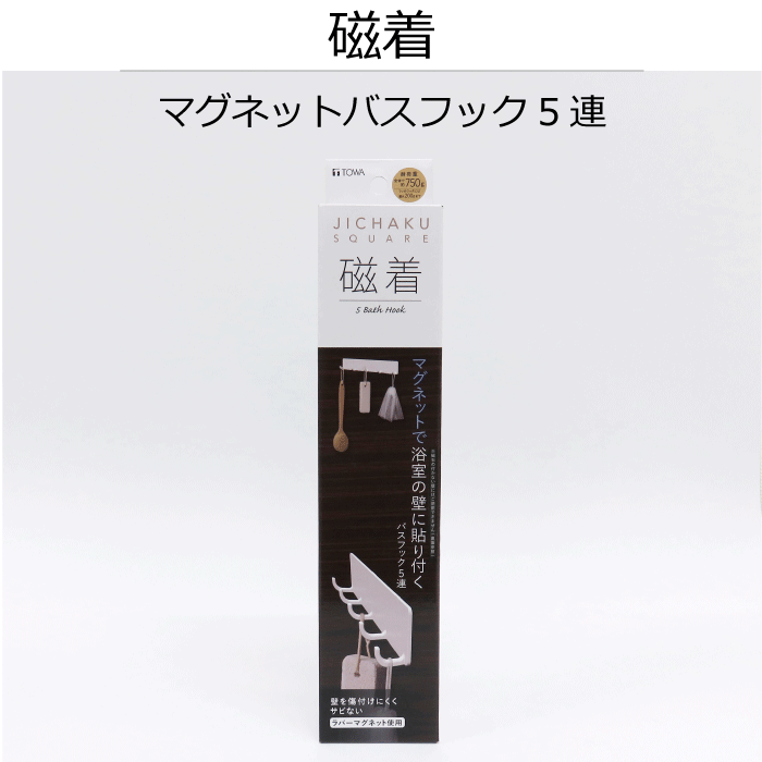 磁着 SQ マグネット バスフック5連 JICHAKU SQUARE マグネット 磁石 浴室 バスルーム 壁 位置調整 調整 好きなところ 高さ 壁面 スポンジ ブラシ フ