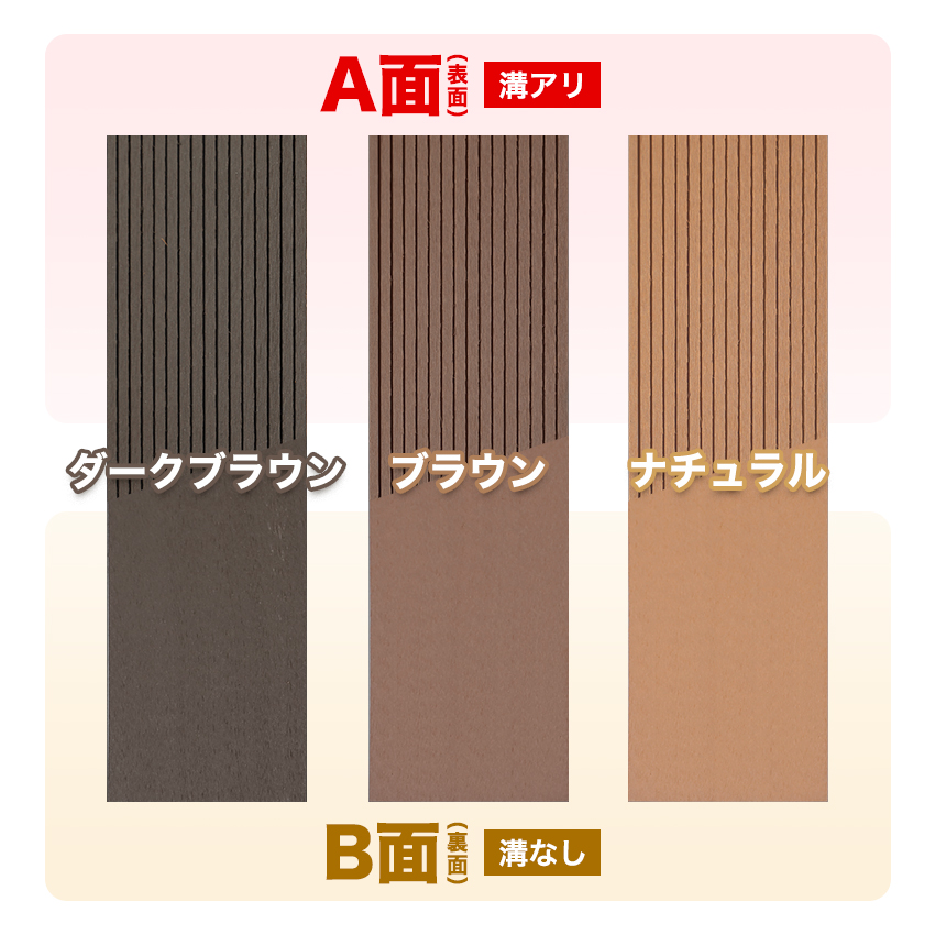 笠木、幕板。表面は溝あり、裏面は溝なしの兼用フェンス材 ルーバー材に最適な部材です。