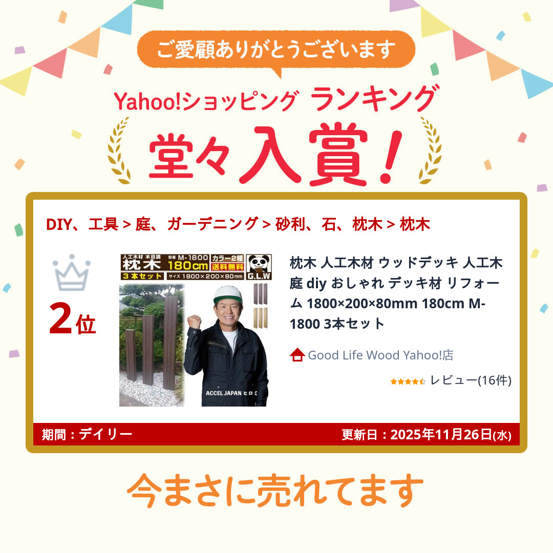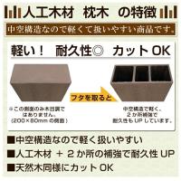 人工木製の枕木です、お庭の門柱、ポスト、表札などDIYで一風変わったおしゃれにこだわってみませんか。フェンスやデッキ材の材料等、様々な建築用資材の材料としても。当店の木材はホームセンターでは販売していないので、このサイズを探している方にオススメです。天然木材と比べて、人工木材はお手入れ簡単で長持ちし腐らないのが特徴です。