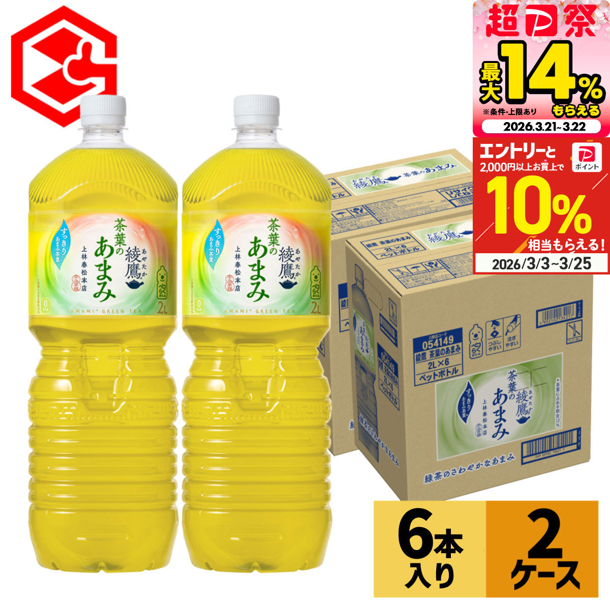 綾鷹 茶葉のあまみ 2L 12本 (6本×2ケース) お茶 緑茶 2000ml 2リットル 苦くない まとめ買い 送料無料 コカコーラ