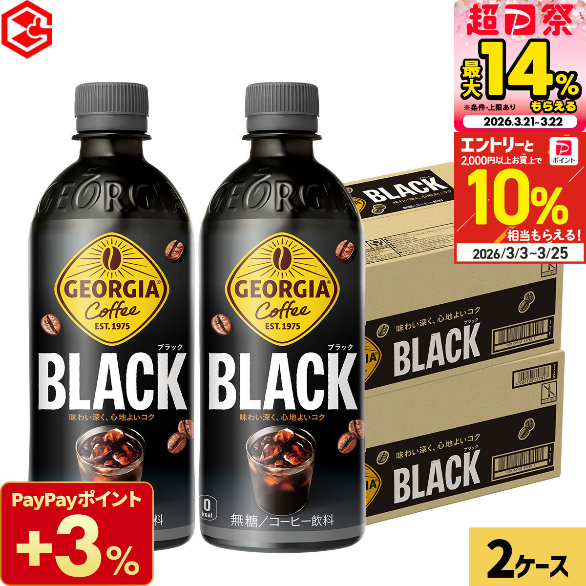 ジョージア ブラック 500ml 48本 (24本×2ケース) コーヒー ペットボトル 珈琲 無糖 ダブルアロマ密封 まとめ買い 送料無料