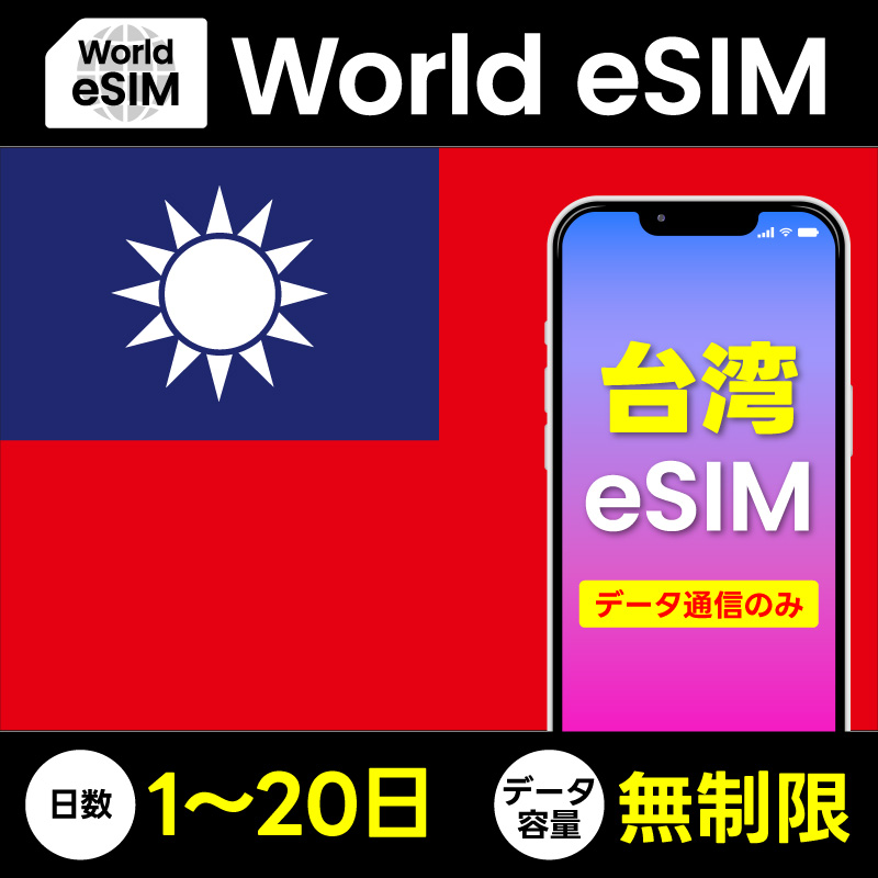 データ専用 eSIM 台湾 無制限 ご利用日数 1日~20日 SIMカード プリペイドSIM データ 通信 メールで受取 海外旅行 観光 留学 出張 ビジネス トラベル