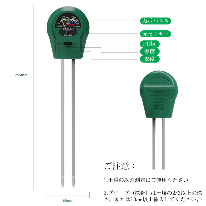爆買 土壌 ph測定器 土壌PH測定器 湿度計 酸度計 光量計 ガーデニング 庭 農業 電池不要 土に挿すだけ
