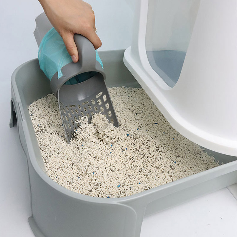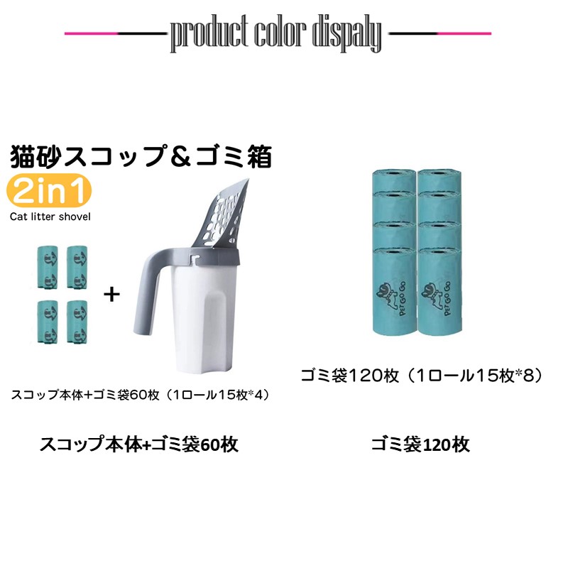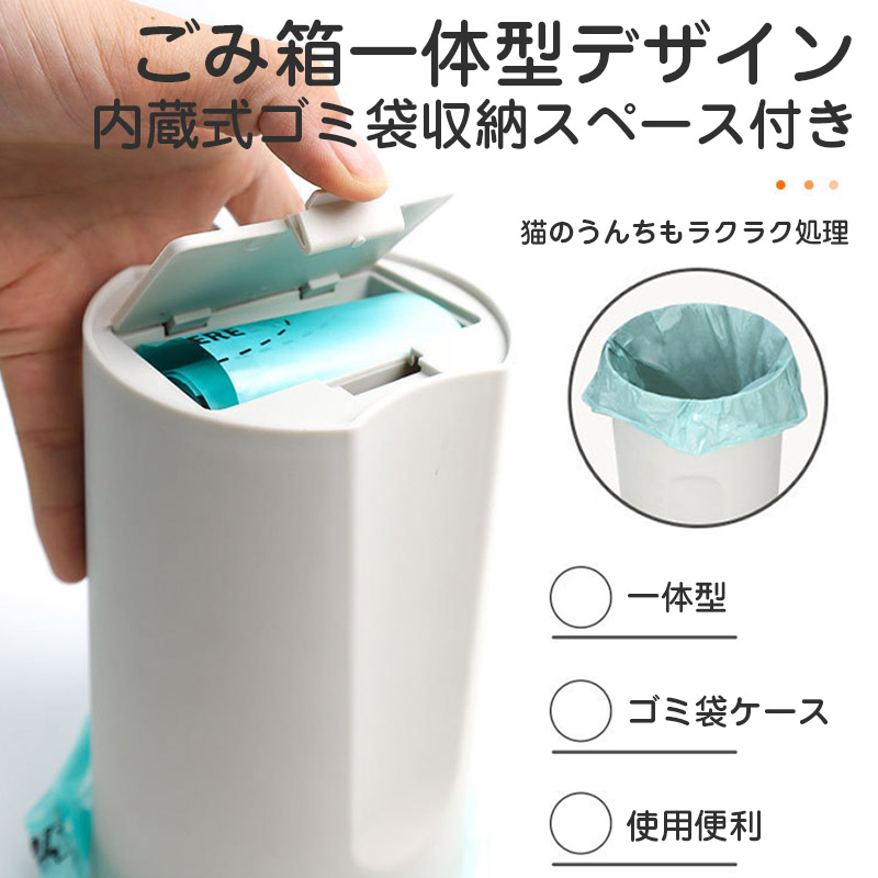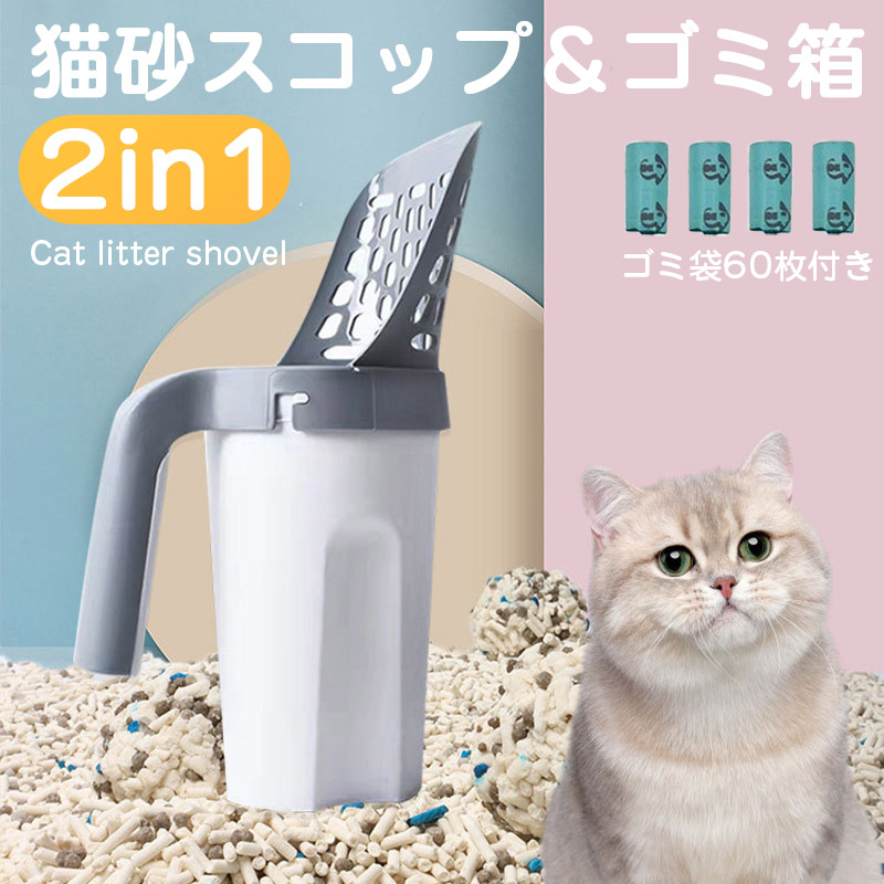 猫砂スコップ+ゴミ箱2in1設計&ゴミ袋60枚付き