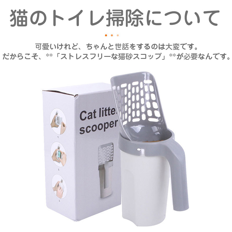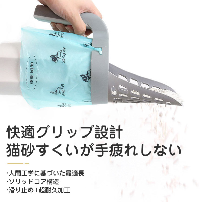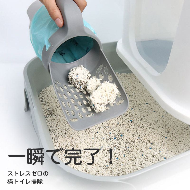 猫砂スコップ ゴミ箱2in1 ゴミ袋付き 猫砂 スコップ トイレスコップ 猫砂取り用品 ネコトイレ用品 シャベル 使いやすい 掃除 便利 軽量 頑丈