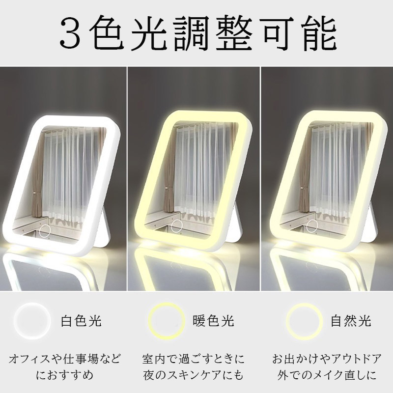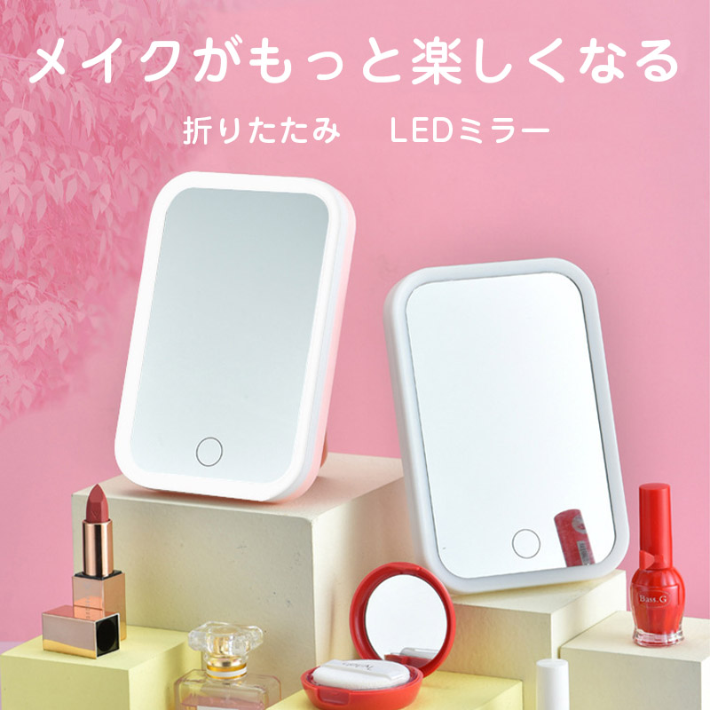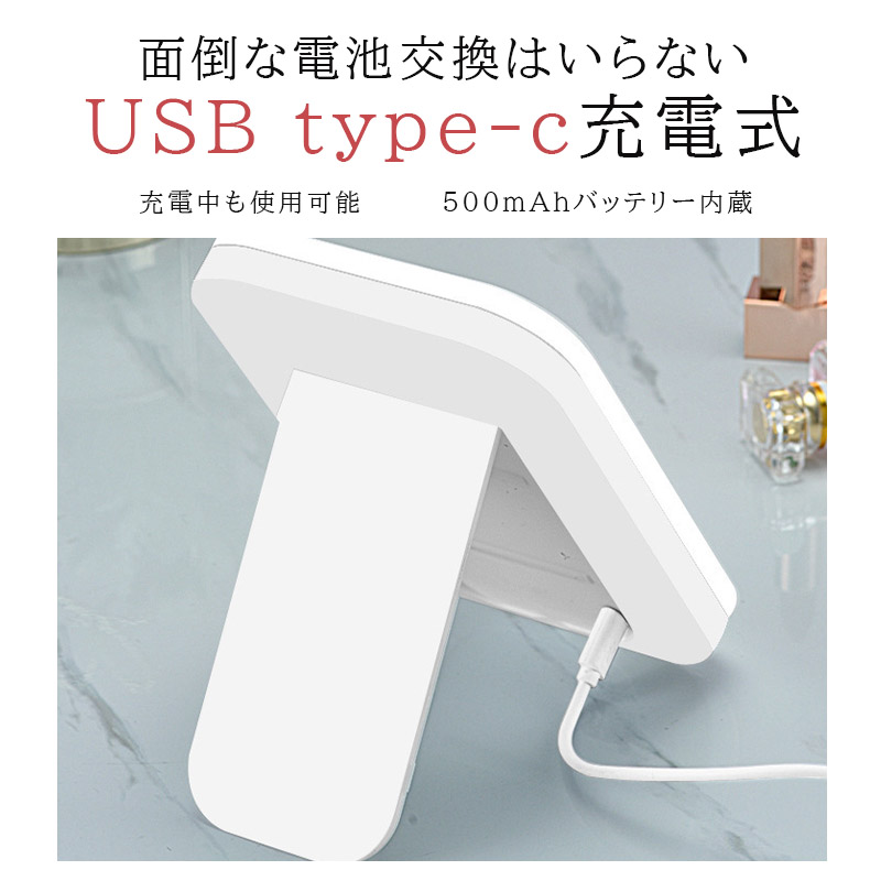 鏡 卓上 女優ミラー 卓上ミラー 卓上鏡 卓上スタンドミラー 手鏡 メイクミラー 折りたたみ led ライト付き usb充電式 おしゃれ コンパクト かわいい 軽量 持ち運び ドレッサー 日光 女性