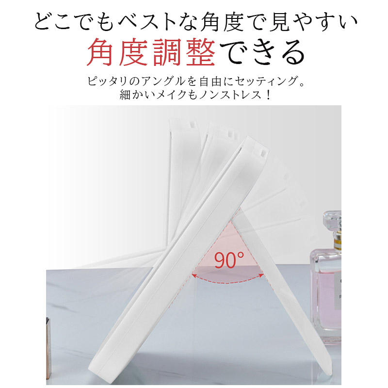 コンパクトに折りたためるから、旅行や外出時にも便利。角度調整も可能で、卓上ミラーとしても快適に使えます。
