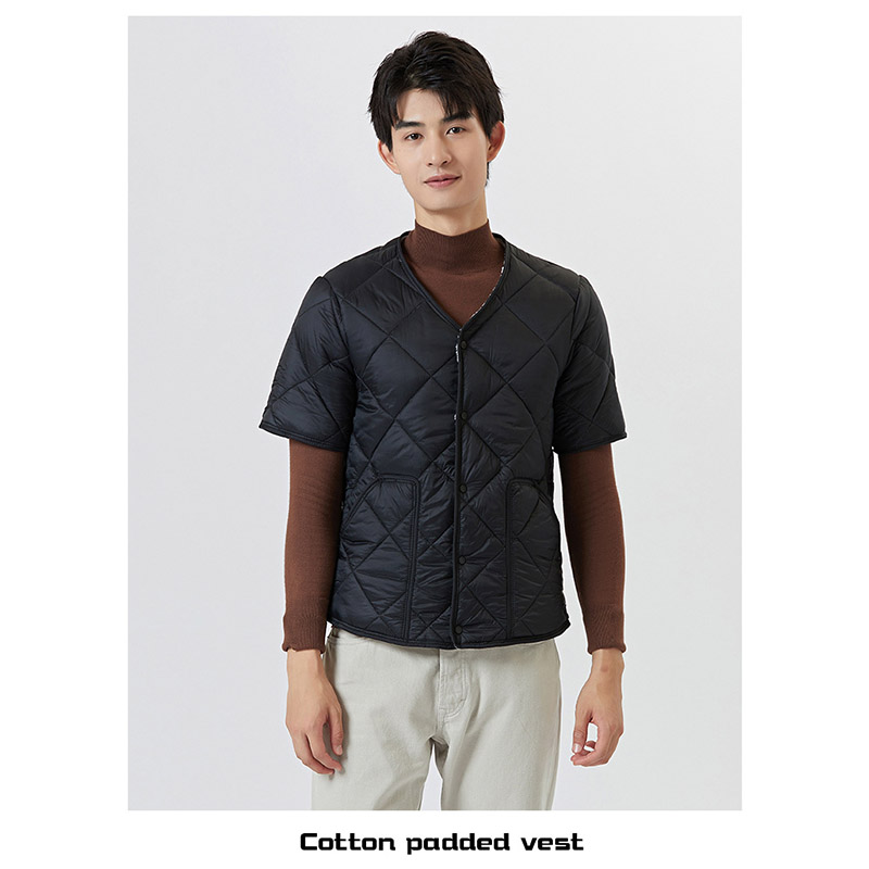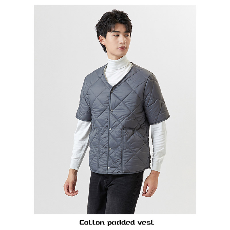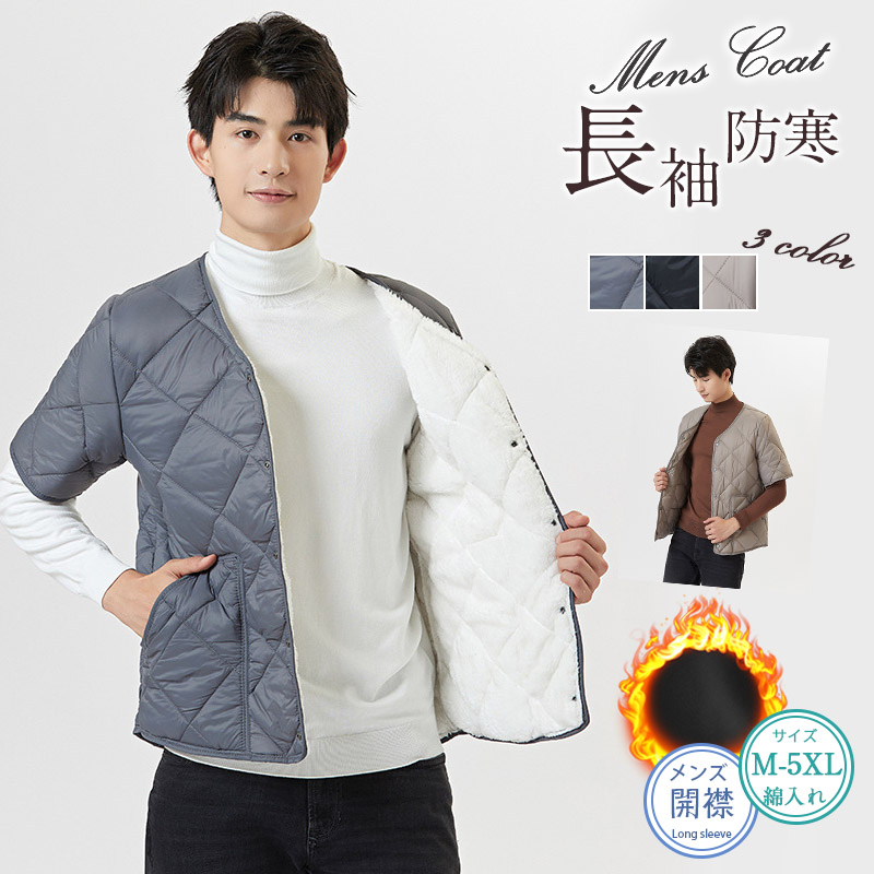 ★2点で10%OFF★キルティングコート メンズ アウター 部屋着 ルームウェア オフィス 中綿コート 中綿ジャケット 半袖 暖かい インナー 秋冬 おしゃれ 韓国