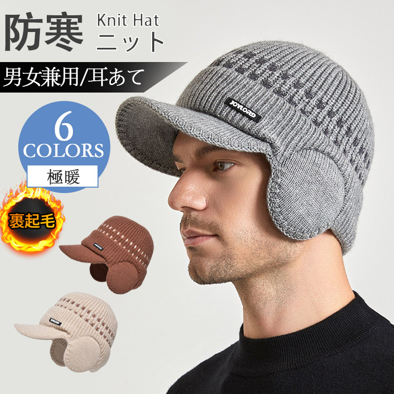 ★2点目400円OFF★裏ボア ニット帽 耳あて イヤーマフ 防寒 メンズ レディース ニットキャップ つば付き 帽子 ニット 秋冬