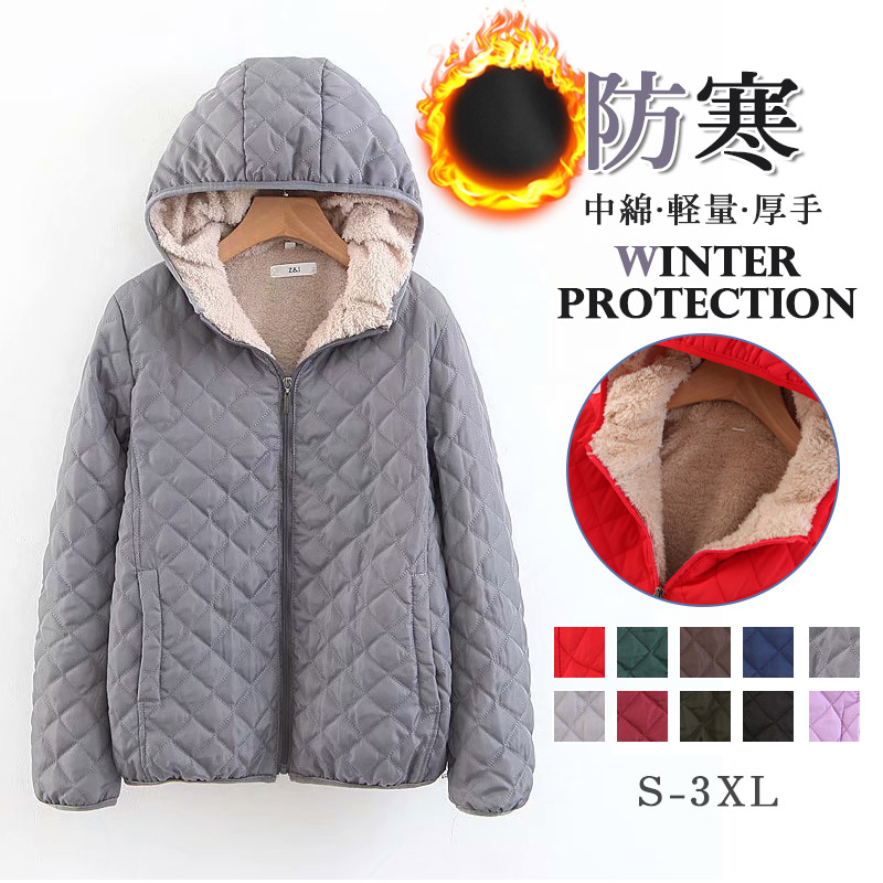 フード付き 中綿ジャケット レディース 中綿コート 防寒 防風 厚手 中綿ブルゾン キルティングコート 暖かい アウター シンプル 秋冬服 おしゃれ