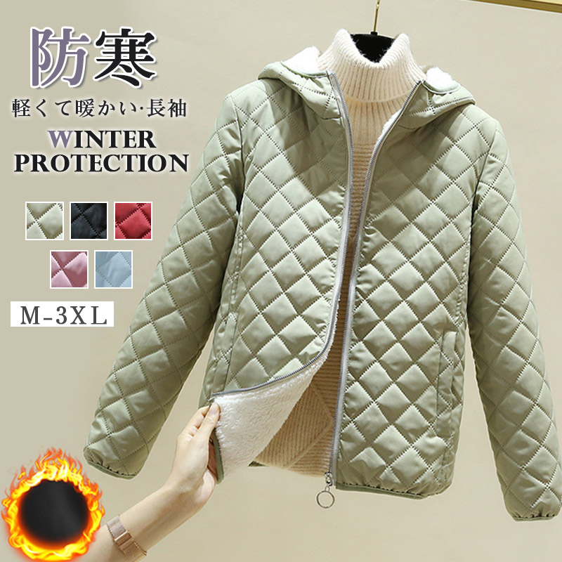 フード付き キルティングコート 裏起毛 中綿ジャケット レディース 中綿コート 防寒 防風 厚手 中綿ブルゾン 暖かい アウター シンプル 秋冬服