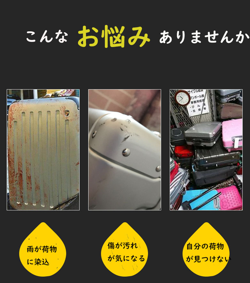 キズや汚れが気になる、雨が荷物に染み込む、自分の荷物が見つけづらい