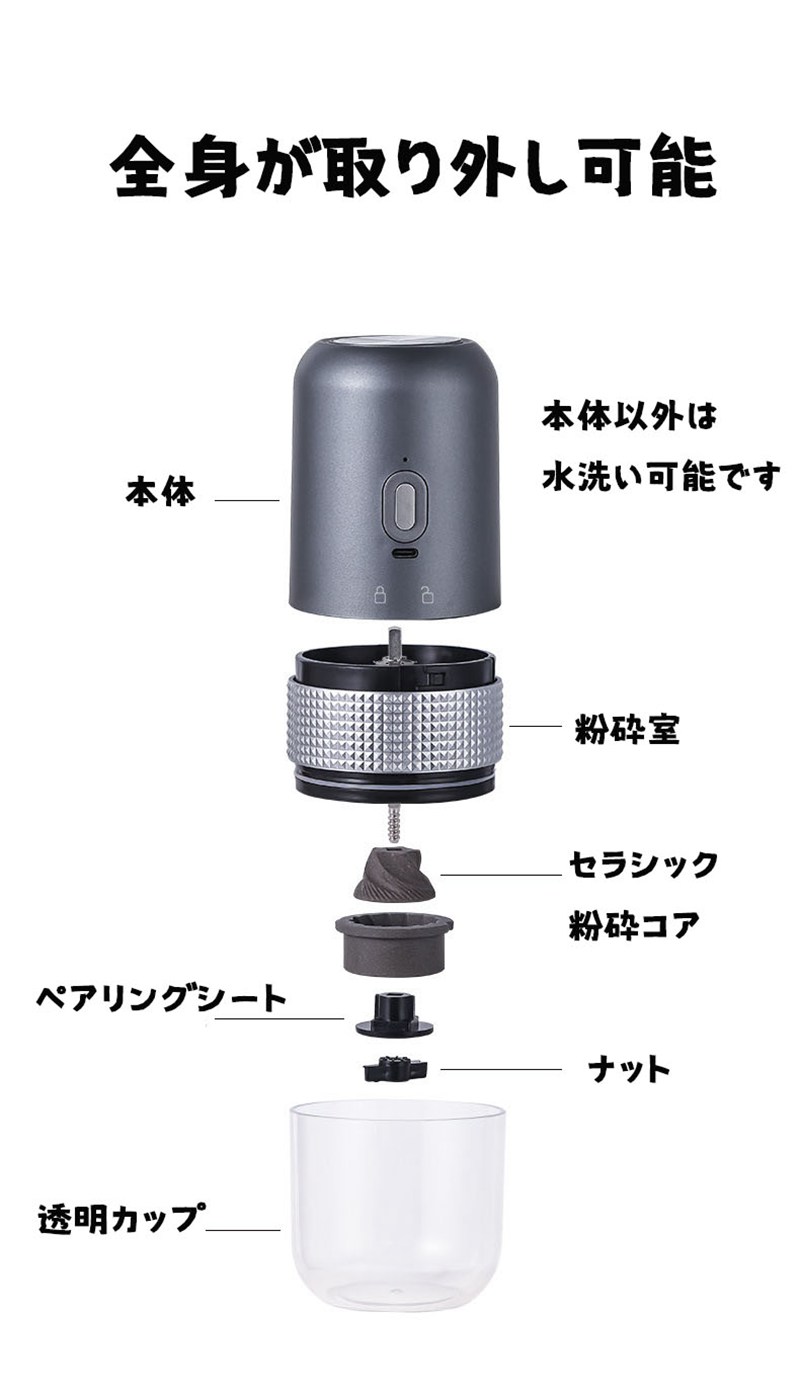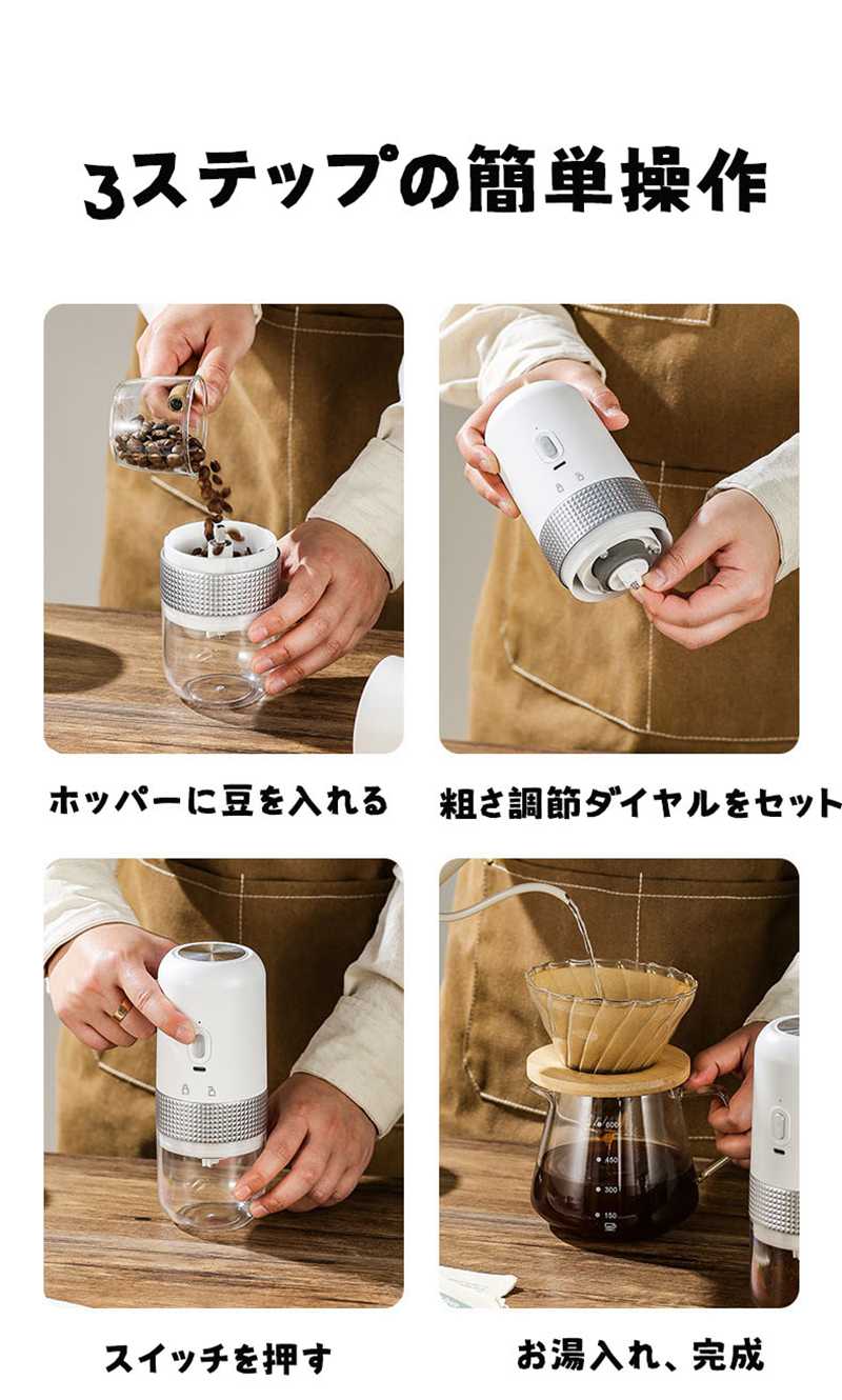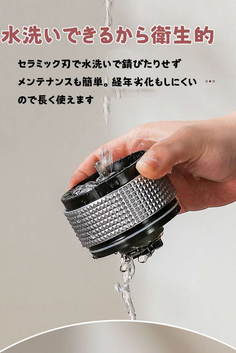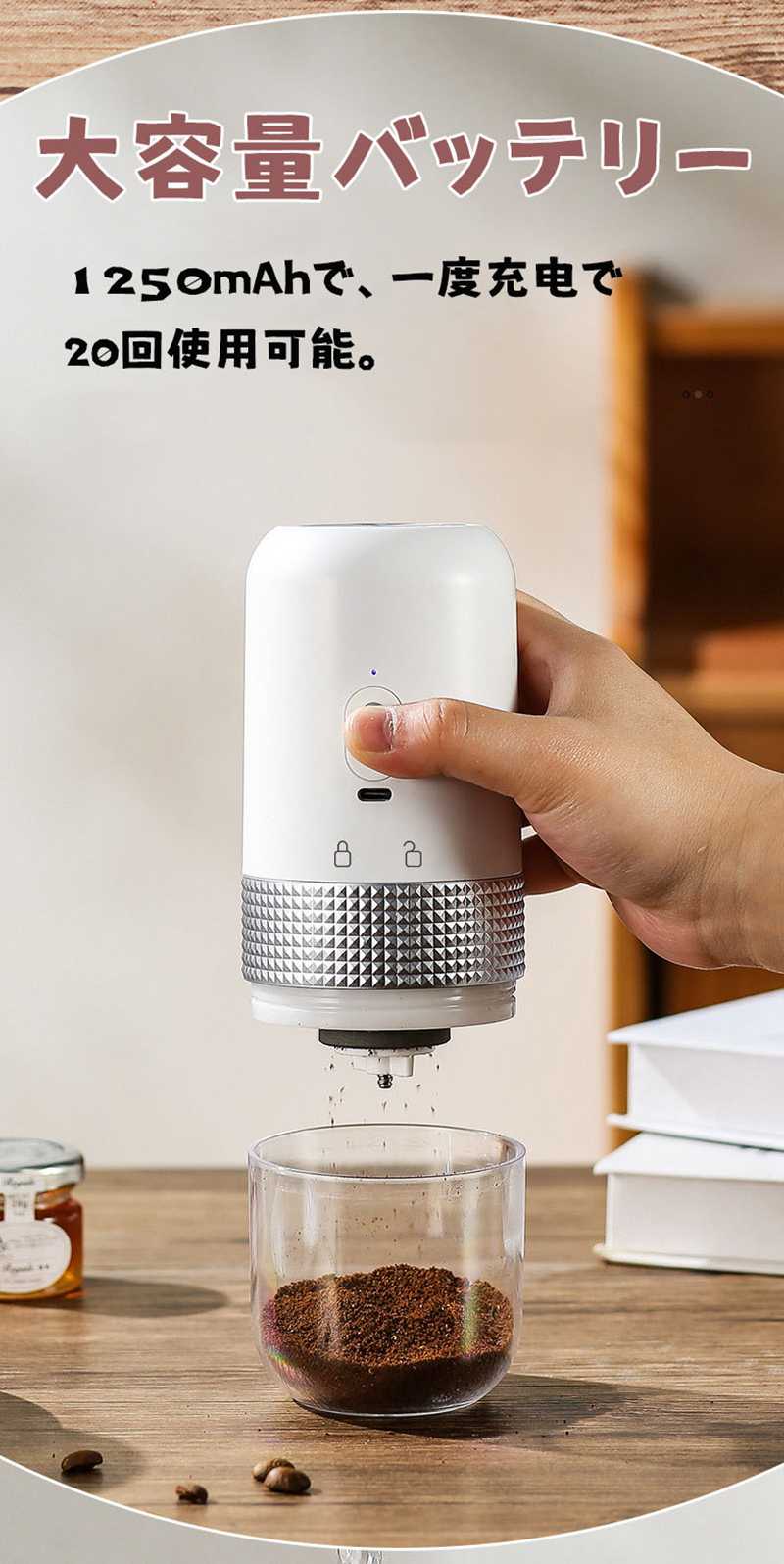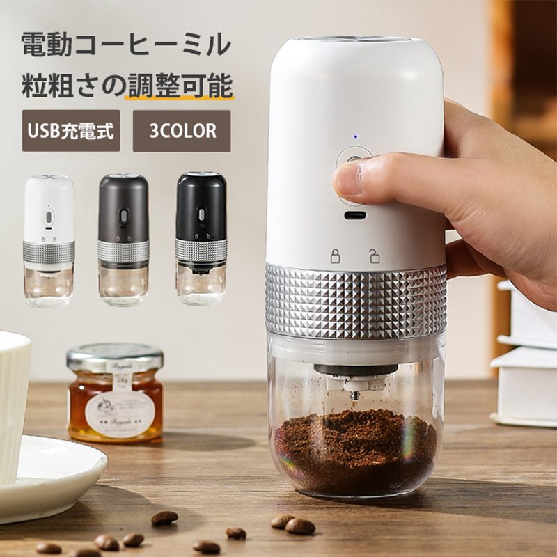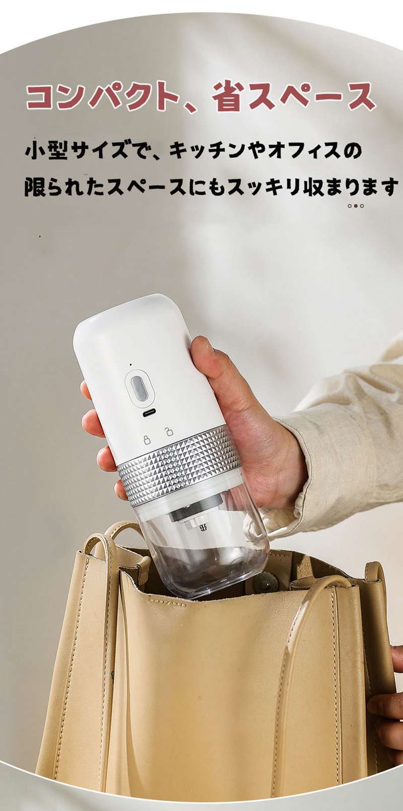 コーヒーミル 電動 コードレス コニカル式 セラミック 充電 コーヒーグラインダー 粒粗さの調整可能 電動ミル 小型 コンパクト おしゃれ コーヒー USB 充電式 水洗い