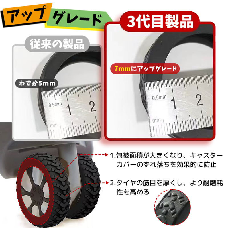 【広範な互換性】荷物用ホイールカバーは高品質シリコンを採用しており、柔らかい素材の弾性を優れている。適用のキャスターの直径範囲は5-6.5cmでございます。