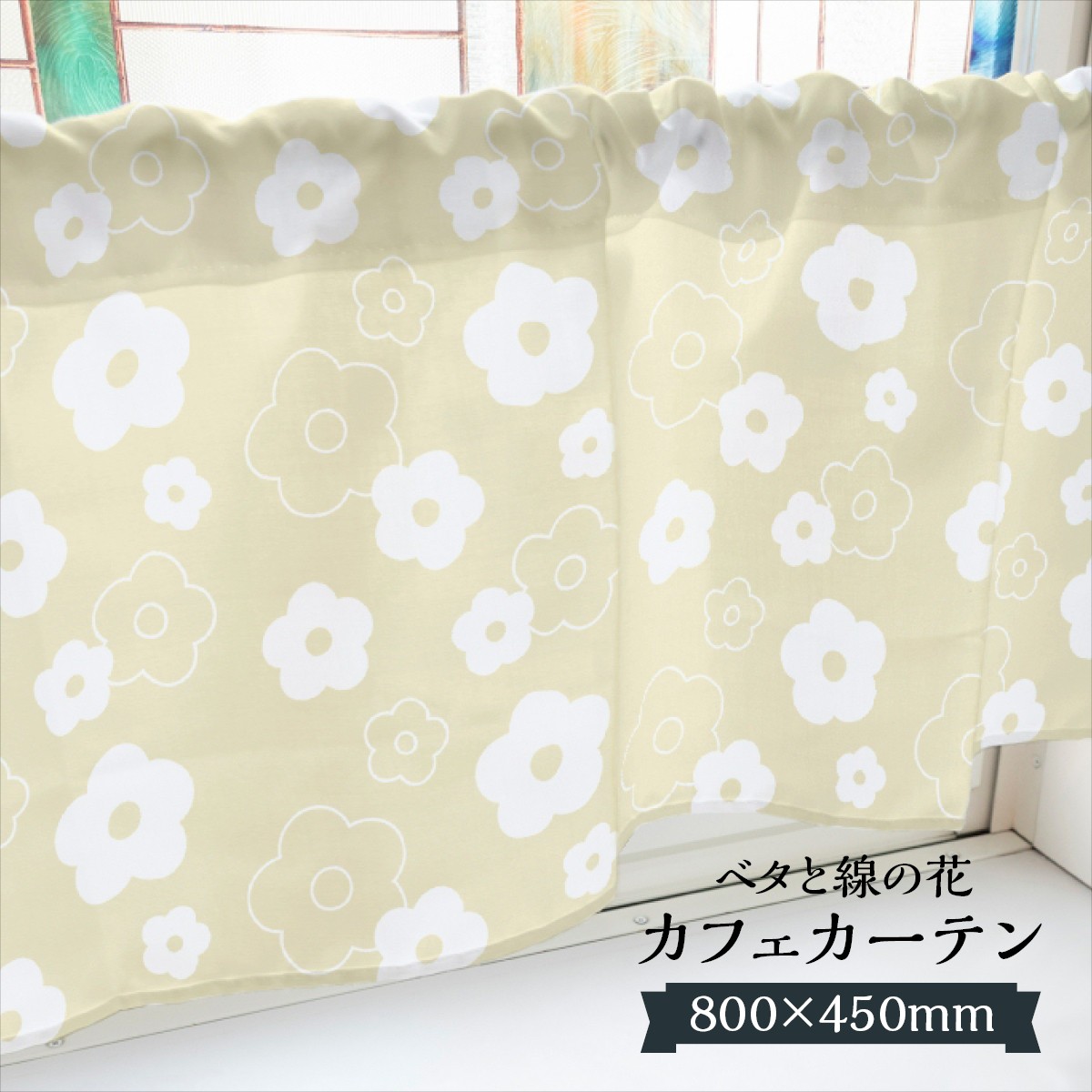 カフェカーテン ベタと線の花 800×450mm