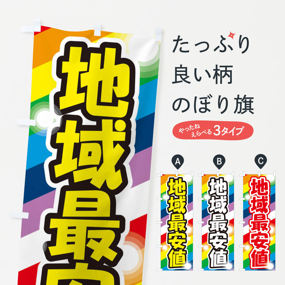 | 素材 | ● のぼり旗 : ポンジ 一般的なのぼり旗の生地 ● A1ポスター : 光沢紙(コート紙) [おすすめ]高級感ある丈夫なトロピカル生地に変更できます。 通常の薄いのぼり生地より裏抜けが減りますがとてもファンが多い良い生地です。 |