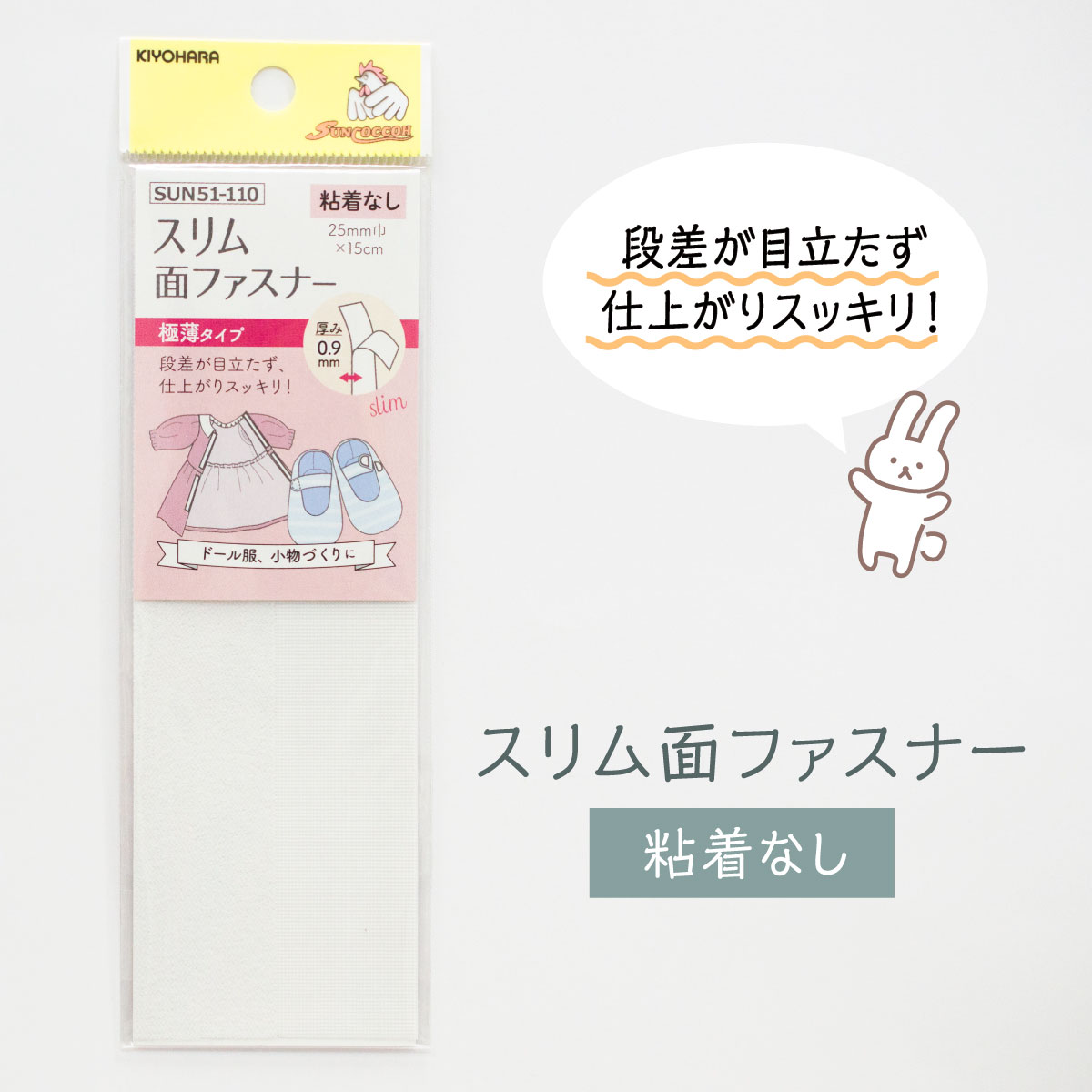 スリム面ファスナー 粘着なし 25mm巾×15cm SUN51-110