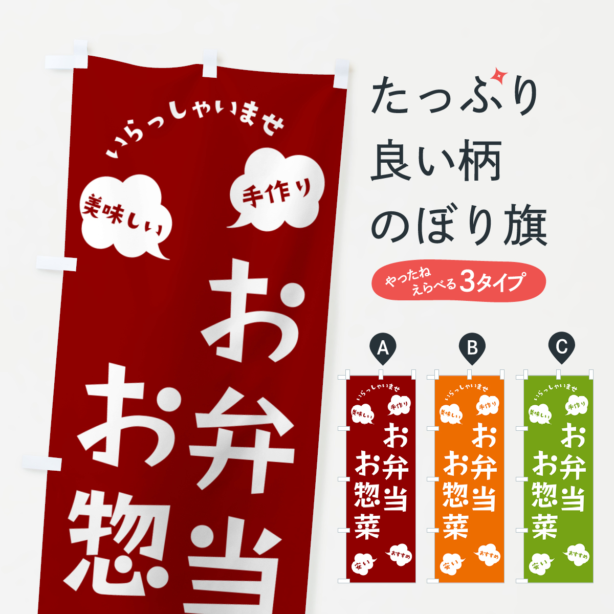 | 内容 | のぼり旗 お弁当・お惣菜・いらっしゃいませ |