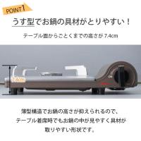 ・カセットコンロは、ごとくの高さ約74mmの薄型設計。テーブル着席時でも鍋の中が見やすく、具材の取り分けもスムーズに行えます。
