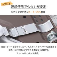 ・ヒートパネル搭載で連続使用時も火力が安定。さらに、圧力感知安全装置を備え、使い勝手にも配慮しています。