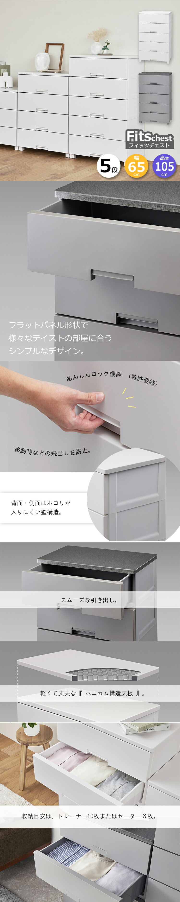 フィッツプラス fitsプラス Fits収納 FITS fits フィッツ 65cm 65 タンス リビング収納 衣類収納 収納家具 収納用品 完成品 プラスチック 引き出し 引出し ひきだし ケース 衣装ケース 脚付 脚 脚付き 足 足付き 天板 fits 洋服 衣類 服 おしゃれ オシャレ お洒落 シンプル フラット インテリア デザイン モノトーン クローゼット リビング 脱衣所 子供部屋 新居 新生活 一人暮らし 引っ越し ロック付き ロック機能 ロック 掃除 楽 掃除しやすい 便利 使いやすい すべり止め すべりにくい ホワイト グレー