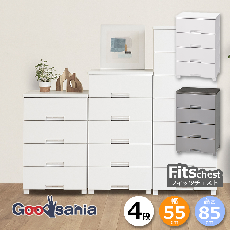 フィッツプラス fitsプラス Fits収納 FITS fits フィッツ 55cm 55 タンス リビング収納 衣類収納 収納家具 収納用品 完成品 プラスチック 引き出し 引出し ひきだし ケース 衣装ケース 脚付 脚 脚付き 足 足付き 天板 fits 洋服 衣類 服 おしゃれ オシャレ お洒落 シンプル フラット インテリア デザイン モノトーン クローゼット リビング 脱衣所 子供部屋 新居 新生活 一人暮らし 引っ越し ロック付き ロック機能 ロック 掃除 楽 掃除しやすい 便利 使いやすい すべり止め すべりにくい ホワイト グレー tenma TENMA 4904746160522 4904746160539