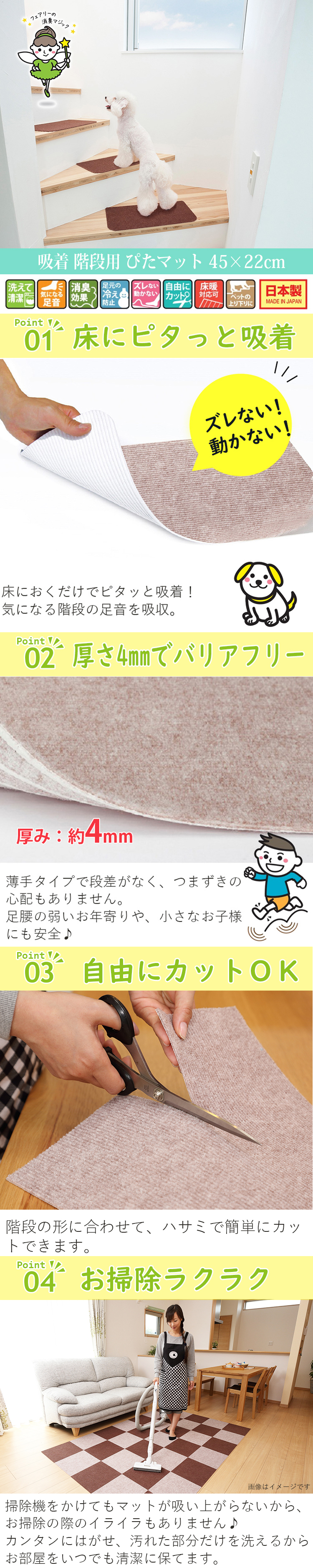 ・階段のすべり防止とキズ防止に最適なマットです。