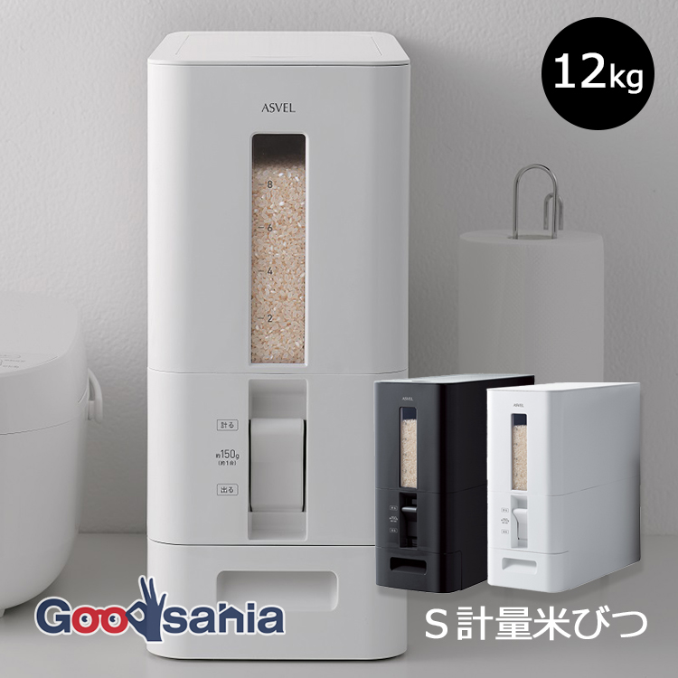 アスベル 米びつ 計量米びつ 自動計量 ライスストッカー 12kg米びつ 無洗米 スリム コンパクト 省スペース キッチン収納 分解洗浄 清潔 防虫 備蓄米 防災グッズ 備蓄用こめびつ お米保存容器 米びつ白 シンプルデザイン 引っ越し祝い 結婚祝い 新生活ギフト 日本製 A7528-19 A7528-07 ホワイト ブラック 白 黒 12キロ 12 自動 1合 残量表示 残量確認