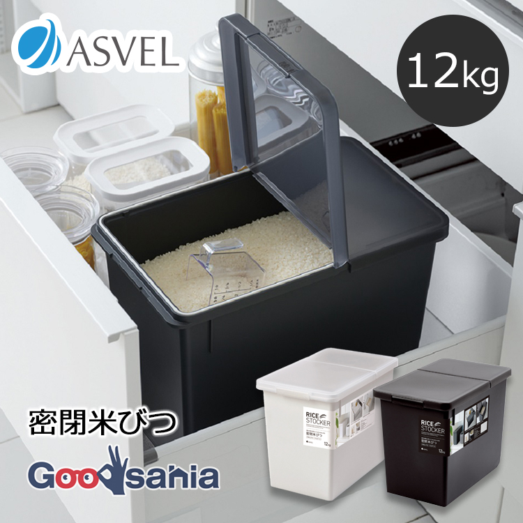 751407 751409 米びつ こめびつ 米櫃 ライスストッカー 密閉 パッキン 米 12 こめ 保存 パッキン付き 計量カップ 無洗米 キッチン ストッカー 台所 お米 ライス ペットフード ホワイト ブラック 白 黒 米びつ 密閉米びつ 12kg ロック付き 備蓄米 お米保存 無洗米対応 防湿 酸化防止 保存容器 清潔 洗える スリム 大容量 ファミリー向け 日本製 アスベル 計量カップ付 台所用品 キッチン収納 防災グッズ 新生活 引っ越し祝い