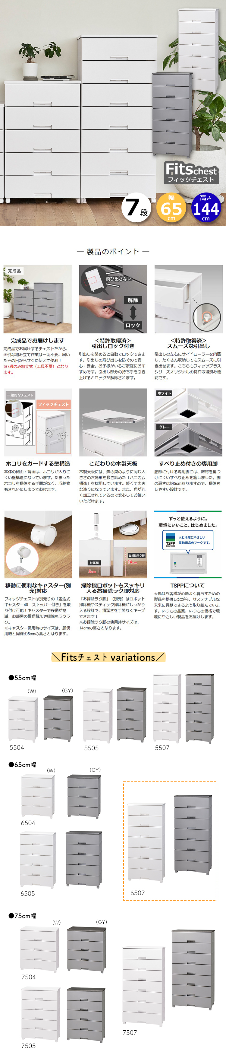 フィッツプラス fitsプラス Fits収納 FITS fits フィッツ 65cm 65 タンス リビング収納 衣類収納 収納家具 収納用品 完成品 プラスチック 引き出し 引出し ひきだし ケース 衣装ケース 脚付 脚 脚付き 足 足付き 天板 fits 洋服 衣類 服 おしゃれ オシャレ お洒落 シンプル フラット インテリア デザイン モノトーン クローゼット リビング 脱衣所 子供部屋 新居 新生活 一人暮らし 引っ越し ロック付き ロック機能 ロック 掃除 楽 掃除しやすい 便利 使いやすい すべり止め すべりにくい ホワイト グレー tenma TENMA 4904746147400 4904746147417