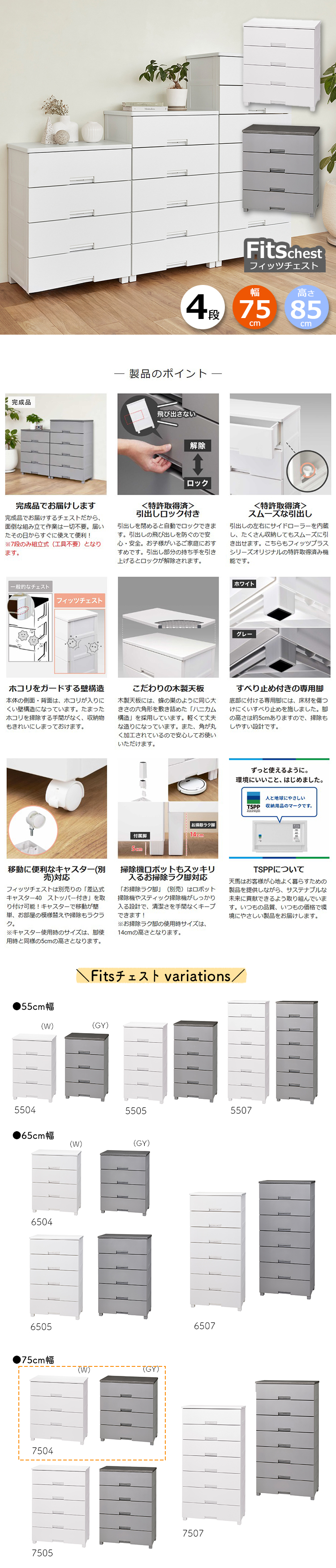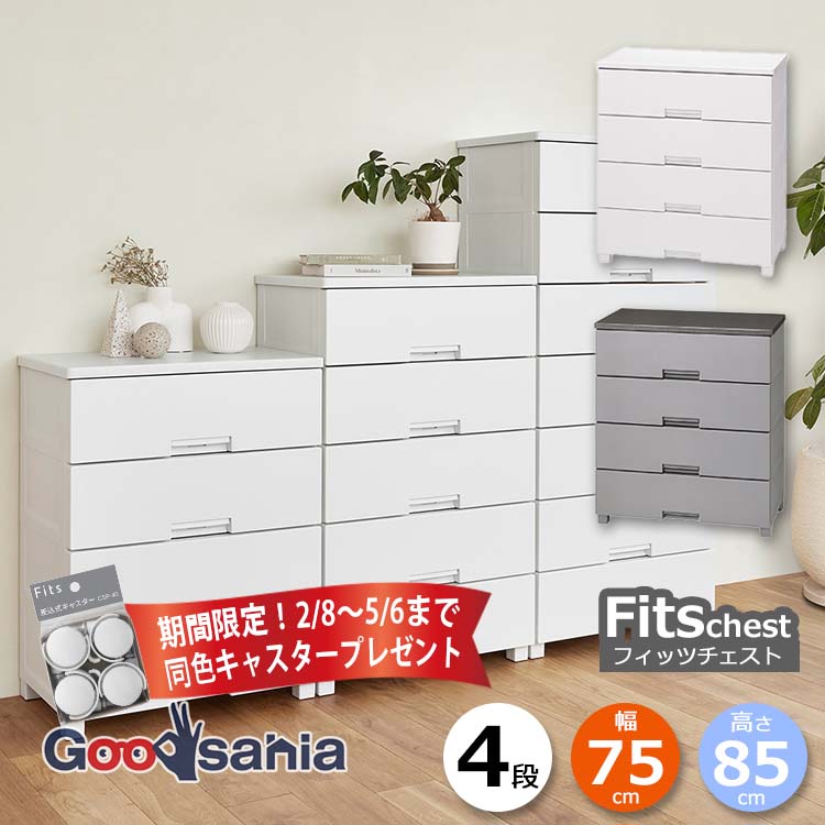 フィッツプラス fitsプラス Fits収納 FITS fits フィッツ 75cm 75 タンス リビング収納 衣類収納 収納家具 収納用品 完成品 プラスチック 引き出し 引出し ひきだし ケース 衣装ケース 脚付 脚 脚付き 足 足付き 天板 fits 洋服 衣類 服 おしゃれ オシャレ お洒落 シンプル フラット インテリア デザイン モノトーン クローゼット リビング 脱衣所 子供部屋 新居 新生活 一人暮らし 引っ越し ロック付き ロック機能 ロック 掃除 楽 掃除しやすい 便利 使いやすい すべり止め すべりにくい ホワイト グレー tenma TENMA 4904746160546 4904746160553