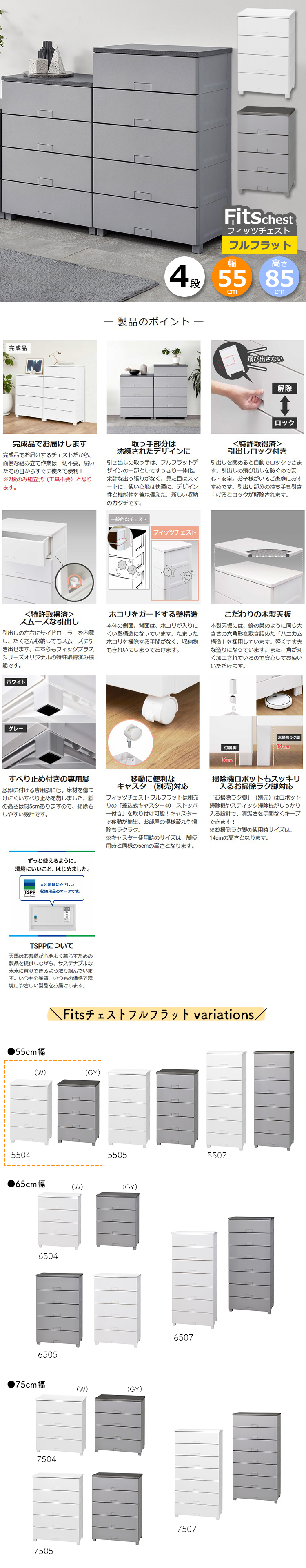 フィッツプラス fitsプラス Fits収納 FITS fits フィッツ 55cm 55 タンス リビング収納 衣類収納 収納家具 収納用品 完成品 プラスチック 引き出し 引出し ひきだし ケース 衣装ケース 脚付 脚 脚付き 足 足付き 天板 fits 洋服 衣類 服 おしゃれ オシャレ お洒落 シンプル フラット インテリア デザイン モノトーン ホテルライク ノイズレス クローゼット リビング 脱衣所 子供部屋 新居 新生活 一人暮らし 引っ越し ロック付き ロック機能 ロック 掃除 楽 掃除しやすい 便利 使いやすい すべり止め すべりにくい ホワイト グレー tenma TENMA 4904746160607 4904746160614