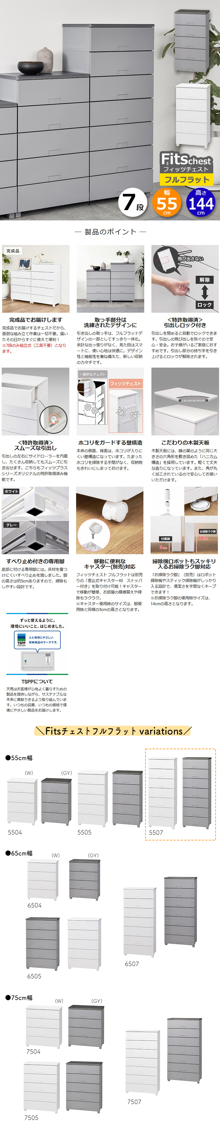 フィッツプラス fitsプラス Fits収納 FITS fits フィッツ 55cm 55 タンス リビング収納 衣類収納 収納家具 収納用品 完成品 プラスチック 引き出し 引出し ひきだし ケース 衣装ケース 脚付 脚 脚付き 足 足付き 天板 fits 洋服 衣類 服 おしゃれ オシャレ お洒落 シンプル フラット インテリア デザイン モノトーン ホテルライク ノイズレス クローゼット リビング 脱衣所 子供部屋 新居 新生活 一人暮らし 引っ越し ロック付き ロック機能 ロック 掃除 楽 掃除しやすい 便利 使いやすい すべり止め すべりにくい ホワイト グレー tenma TENMA 4904746160645 4904746160652