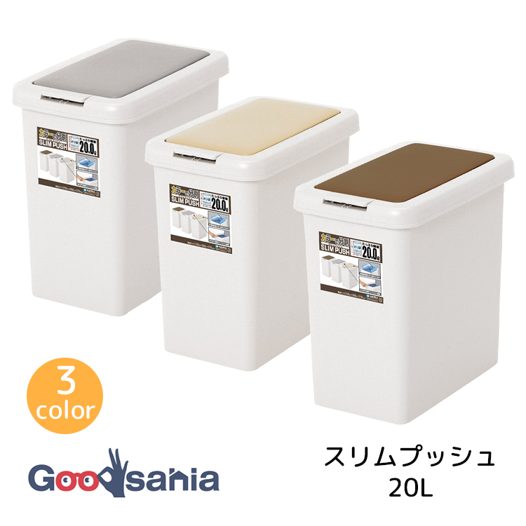 ごみ箱 ダストボックス ふた付き 20リットル スリム ワンプッシュ開閉 袋留め付き 分別 ポリ袋ホルダー スッキリ 片手で開く ペール シンプル 使いやすい 実用的 キッチン リビング 洗面所 オフィス 子ども部屋 一人暮らし 清潔感 新生活 生活雑貨 SankoPlastic サンコー ライトグレー ライトベージュ ライトブラウン グレー ベージュ ブラウン
