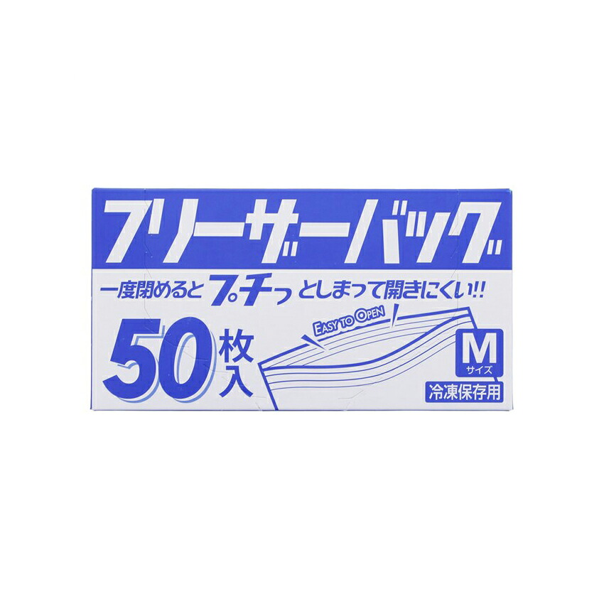 一度閉めるとプチっとしまって開きにくい、フリーザーバッグMサイズ50枚入り
