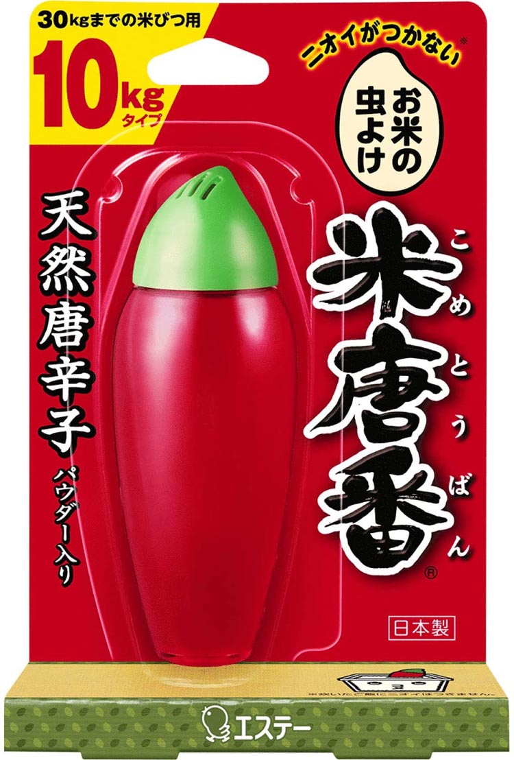 商品説明文:天然唐辛子と酒精(発酵アルコール)、クミンアルデヒド(香辛料由来成分)入りの唐辛子ゼリーがお米を虫から守ります。