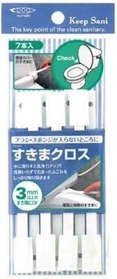■「すきまクロス 7本入」は、超極細のアクリル繊維製不織布を使用し、洗剤なしでも使えるトイレ用スポンジです。こすり取った汚れをからめ取るので、汚れの再付着がほとんどありません。汚れが直接手につかないスティックタイプ。トイレのほかに、洗面所やお風呂などのすき間のお手入れにもお使いいただけます。