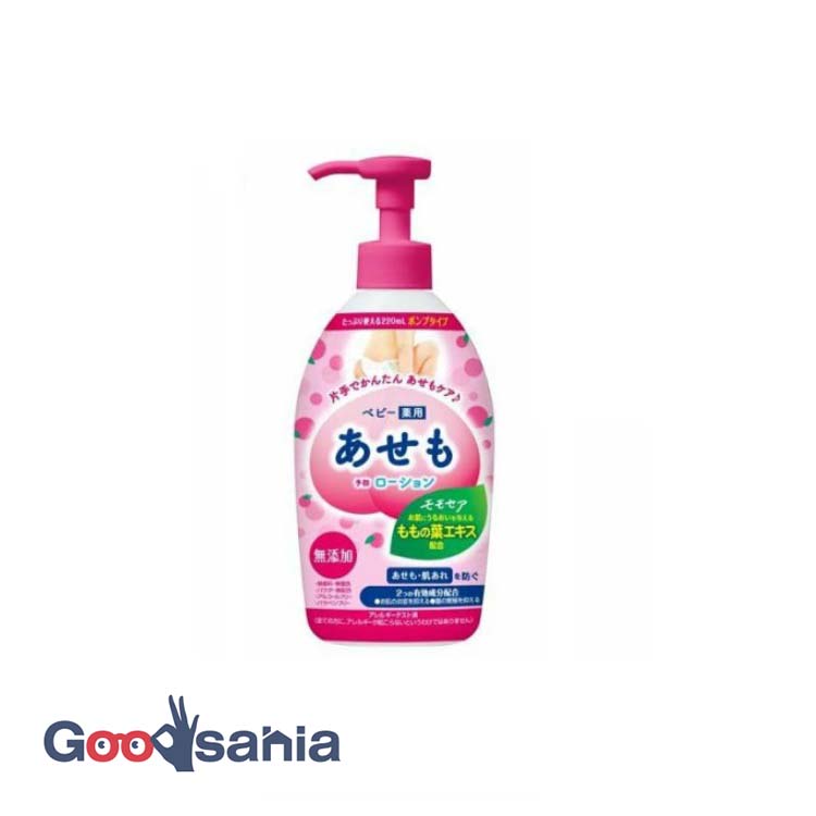 商品説明文:片手で使えて便利なポンプタイプ。たっぷり使える大容量220mL。垂れにくくて使いやすい、とろみのある使用感。赤ちゃんにやさしい5つのこだわり。アルコールフリー。無香料。無着色。パラベンフリー。アレルギーテスト済み。(すべての方に、アレルギーが起こらないというわけではありません。)あせもを防ぐ3つの成分配合。グリチルリチン酸ジカリウム(抗炎症成分)アラントイン(抗炎症成分)ももの葉エキス(うるおい成分)