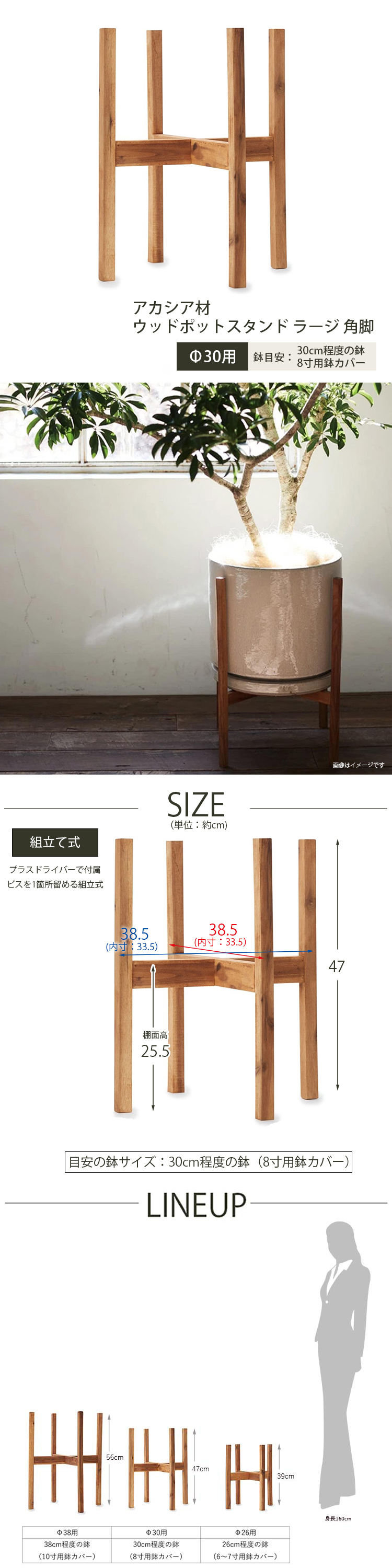 YAMATEI 植木鉢スタンド アカシア材 ウッドポットスタンド ラージ 角脚 Φ30用 約38.5×38.5×47cm AC-WS2Q47E