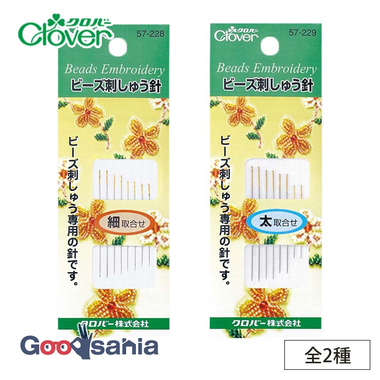 57-228 57-229 Clover ビーズ刺しゅう 刺繍針 針 ビーズ用 ビーズワーク アソート 針セット 使いやすい 縫いやすい 手縫い 手芸 手仕事 手しごと 趣味 裁縫 道具 ツール 手作り ハンドメイド 針仕事 ビーズ刺繍 手芸針 刺しゅう針 ノーマルポイント アクセサリー制作 ワンポイント 装飾 丸小ビーズ対応 細取合せ 太取合せ